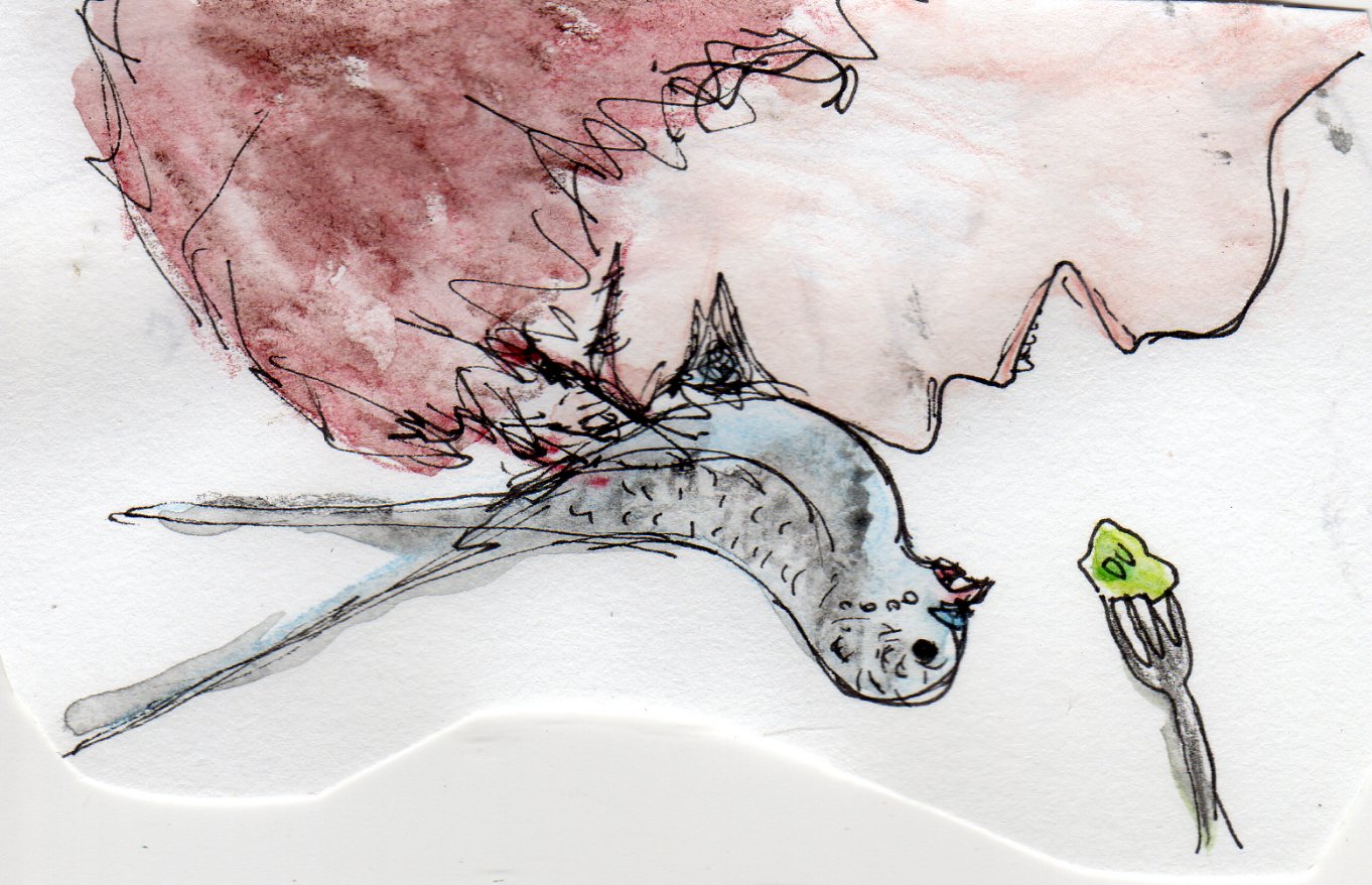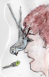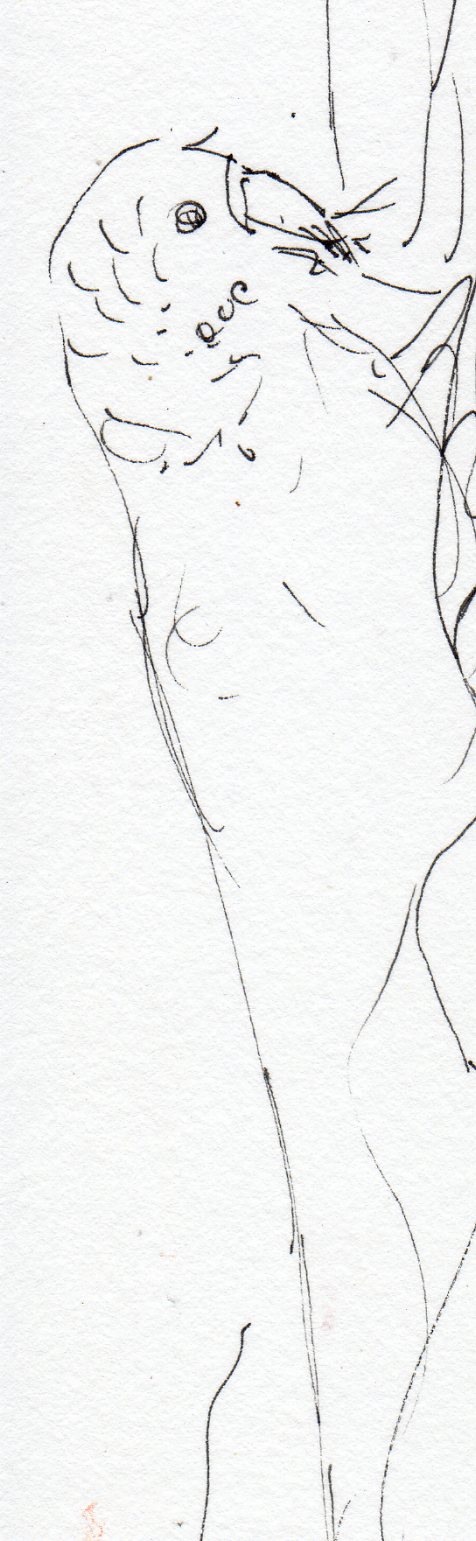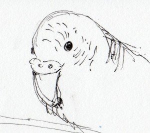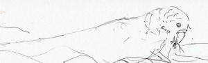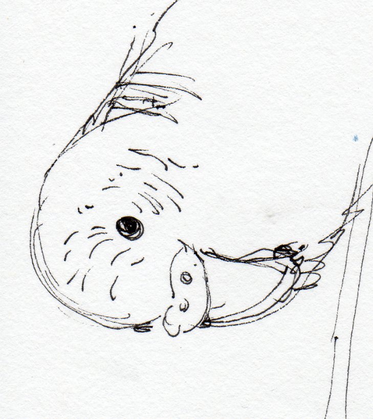 You may have noticed that the things I draw are simple and relatively small. For example, I don’t know how to draw acres, or even square inches, of snow. I was glad to see yesterday that the oaks on the edge of the golf course were holding it in modest handfuls.