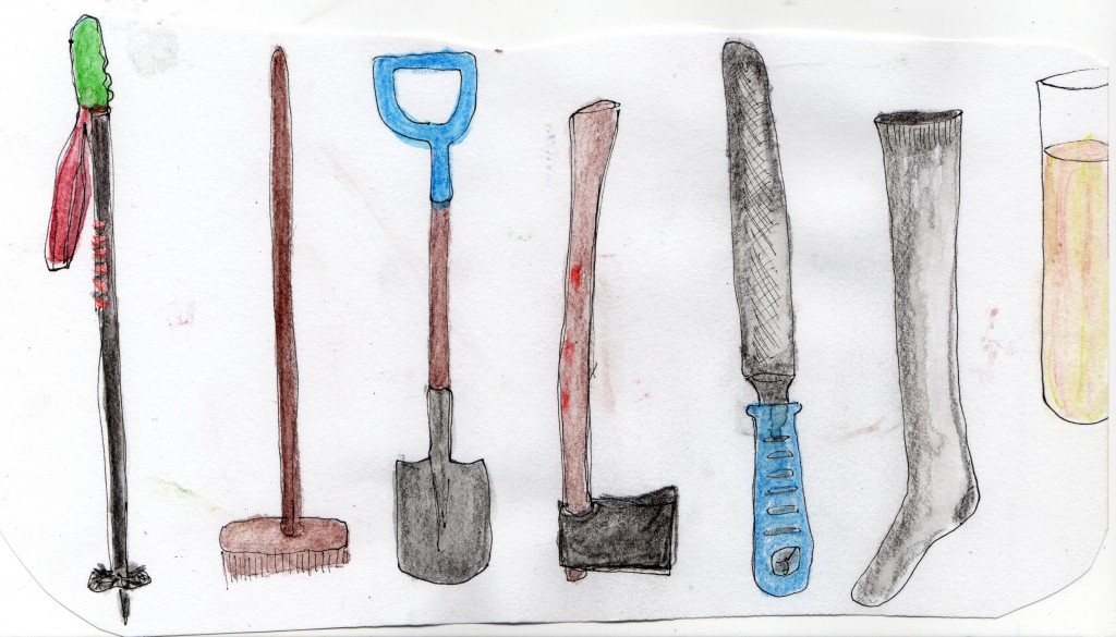 Today I had to go a couple of km over the frozen snow so I cut up some old socks and pulled them on over my boots. They made walking possible on the glazed footpath. It was easier to stride along the gritted vehicle tracks.